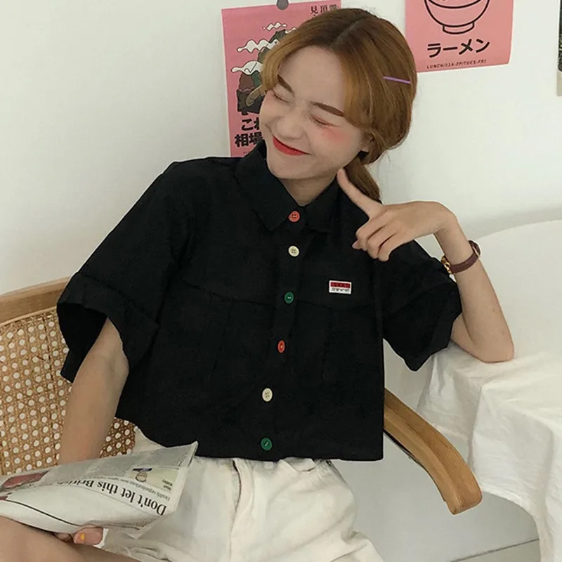 Sale Women's Shirt 2019 Harajuku Short Sleeve Polo Collar Casual Cotton Preppy Top Girls Fashion Letter Embroidery Blusas Femininas